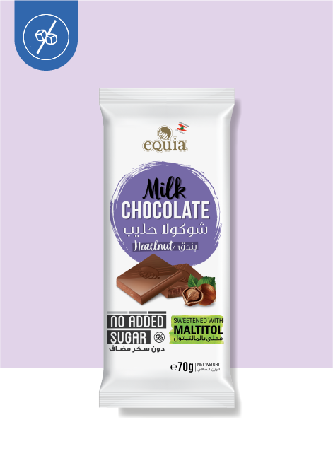 Cocoa butter, maltitol (23.3%), skimmed milk, hazelnut, cocoa mass, cocoa powder, emulsifier: soy lecithin, vanilla.